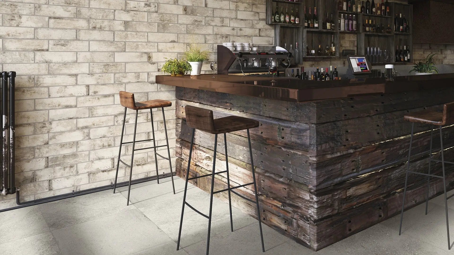 Cantina offers a rustic brick look for living-spaces where tradition is at home.