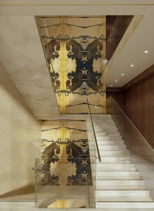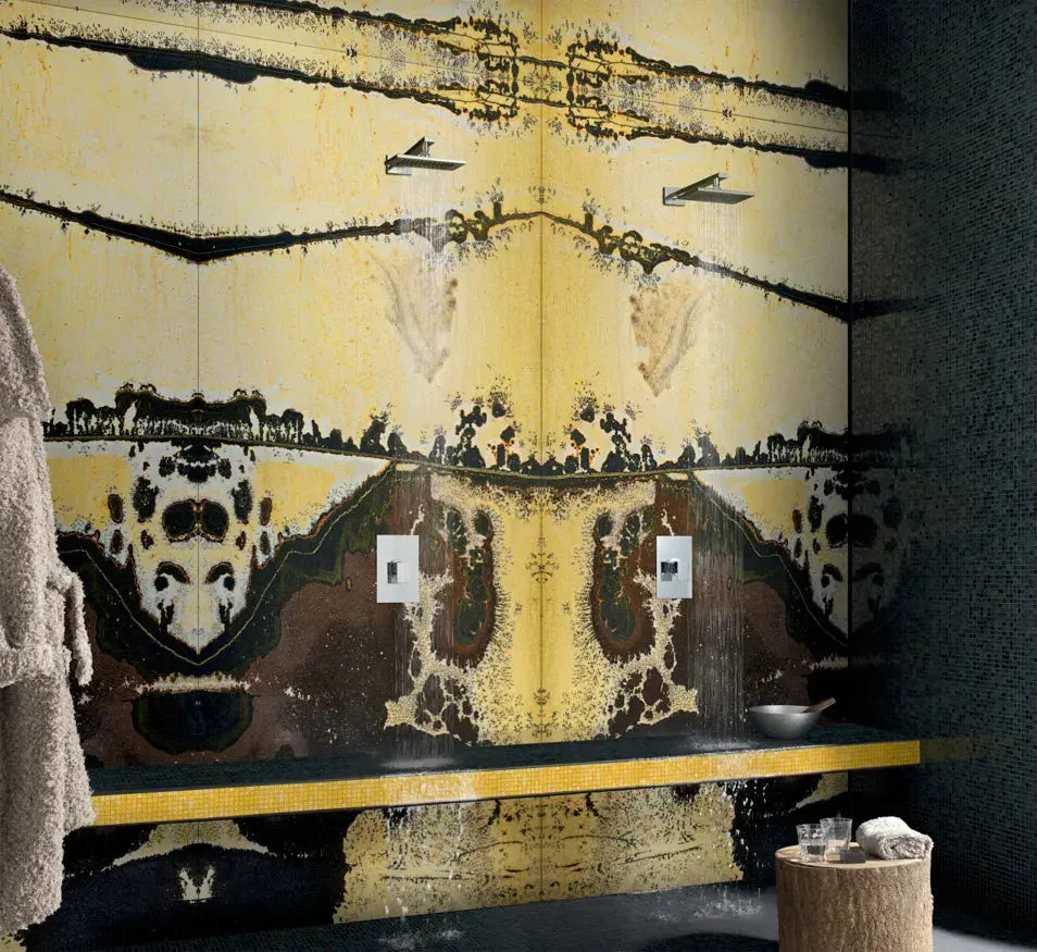 Each slab is a unique creation, capable of transforming any room into a space of pure magic. Its surfaces shimmer with a light of their own, reflecting a symphony of colours that change with the viewing angle, creating an unparalleled effect of depth and visual dynamism. These stand out for their fascinating textures, enriched with intricate crystalline details and natural veining, capturing the mysterious and magnetic essence of the most precious gems.