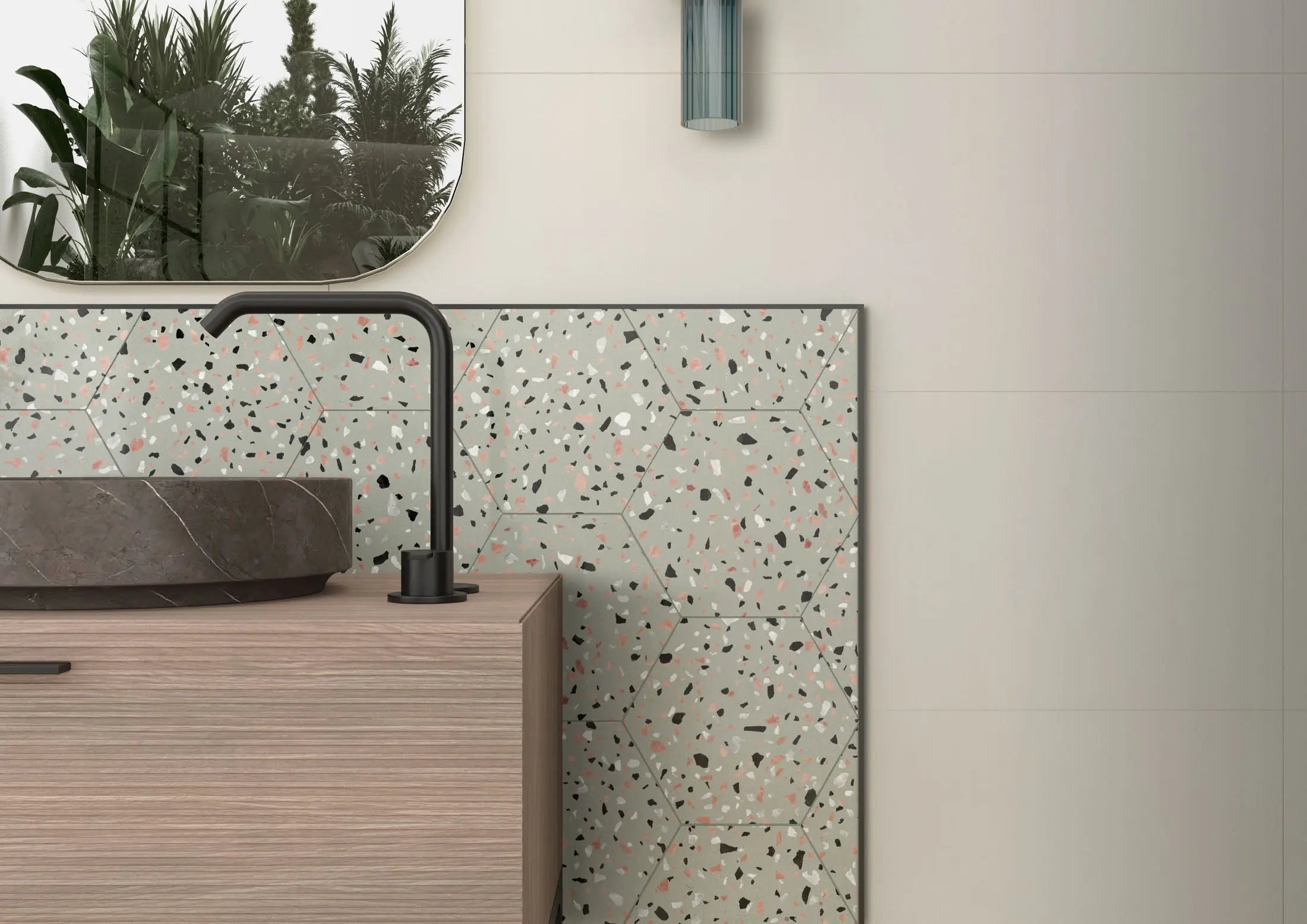 Create beautifully abstract designs with our porcelain art hexagon tiles. Made with precision and expertise, these tiles are the perfect addition to any space. Each unique hexagon shape adds a touch of modern elegance to your home or office. Elevate your decor with our abstract porcelain art hexagon tiles.