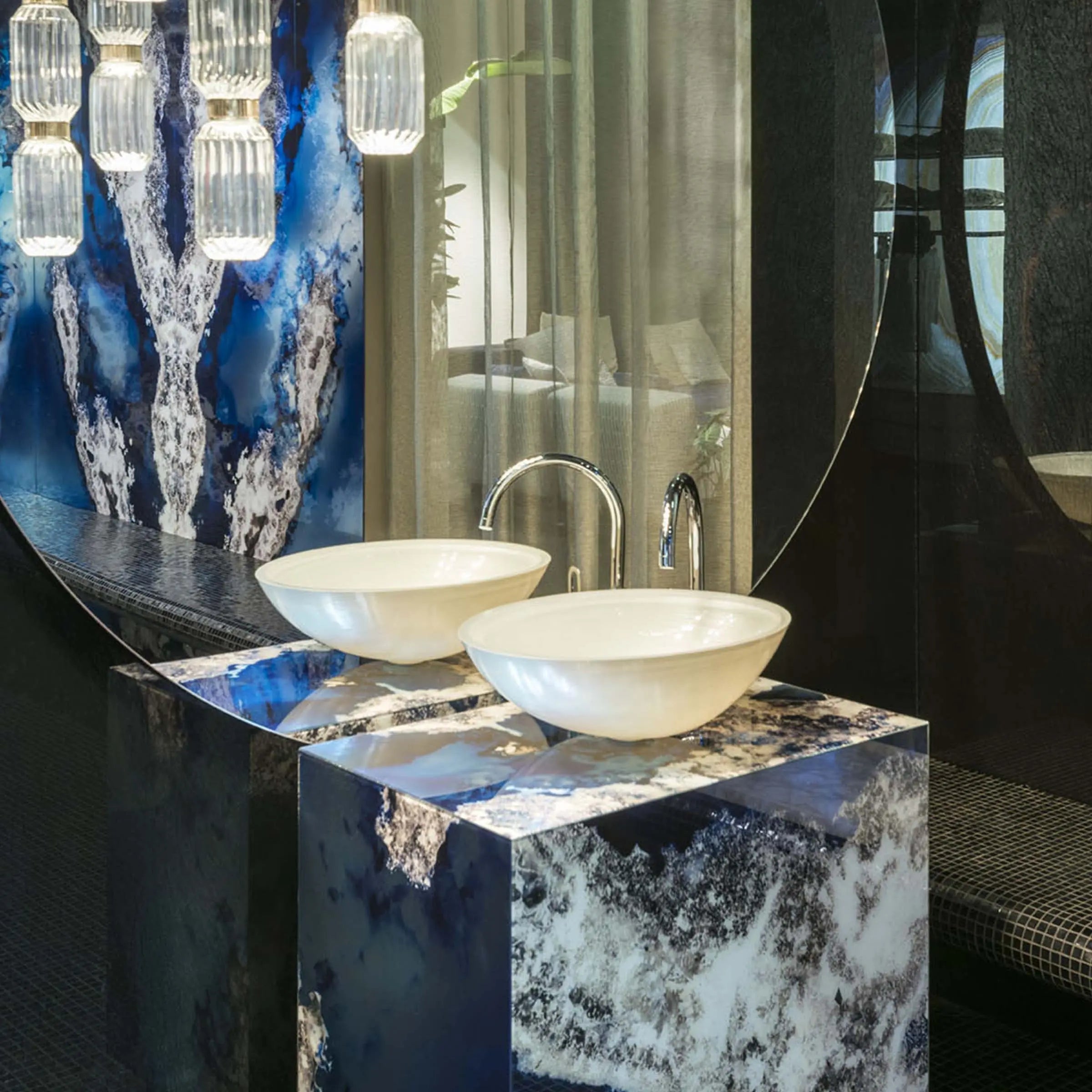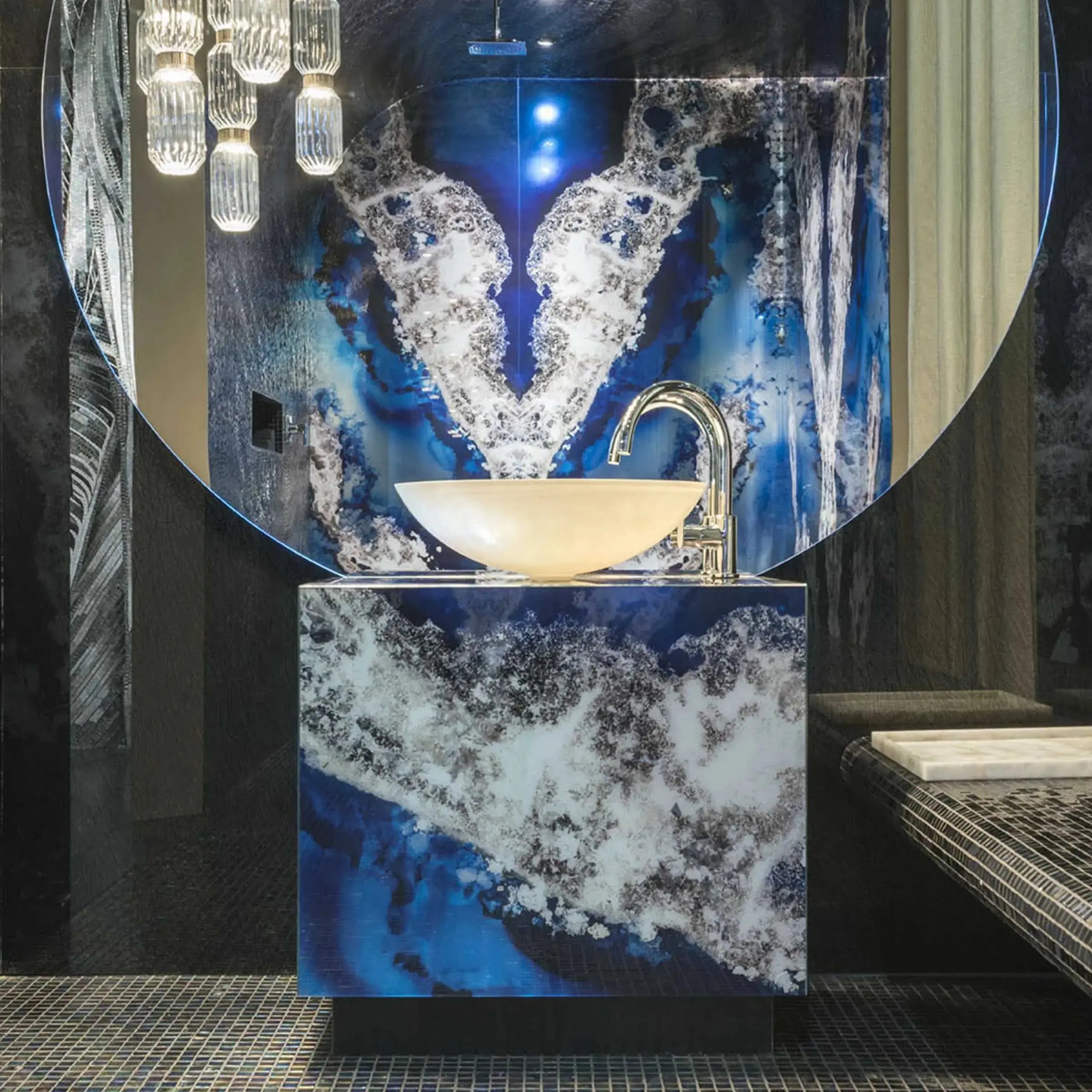 Galaxy is part of the Gem Glass Collection, which aims to recreate the beauty of precious stones and volcanic rocks by creating striking chromatic effects.